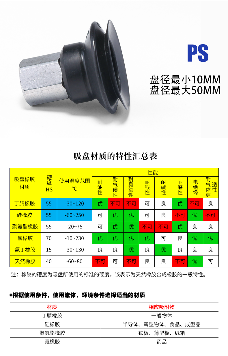 電子吸嘴機(jī)械手配件PS-10JM,PS-15JM,PS-20JM,PS-25JM,PS-30JM,PS-35JM,PS-40JM,PS-50JM,PS-10JF,PS-15JF,PS-20JF,PS-25JF,PS-30JF,PS-35JF,PS-40JF,PS-50JF真空吸盤附接頭硅膠