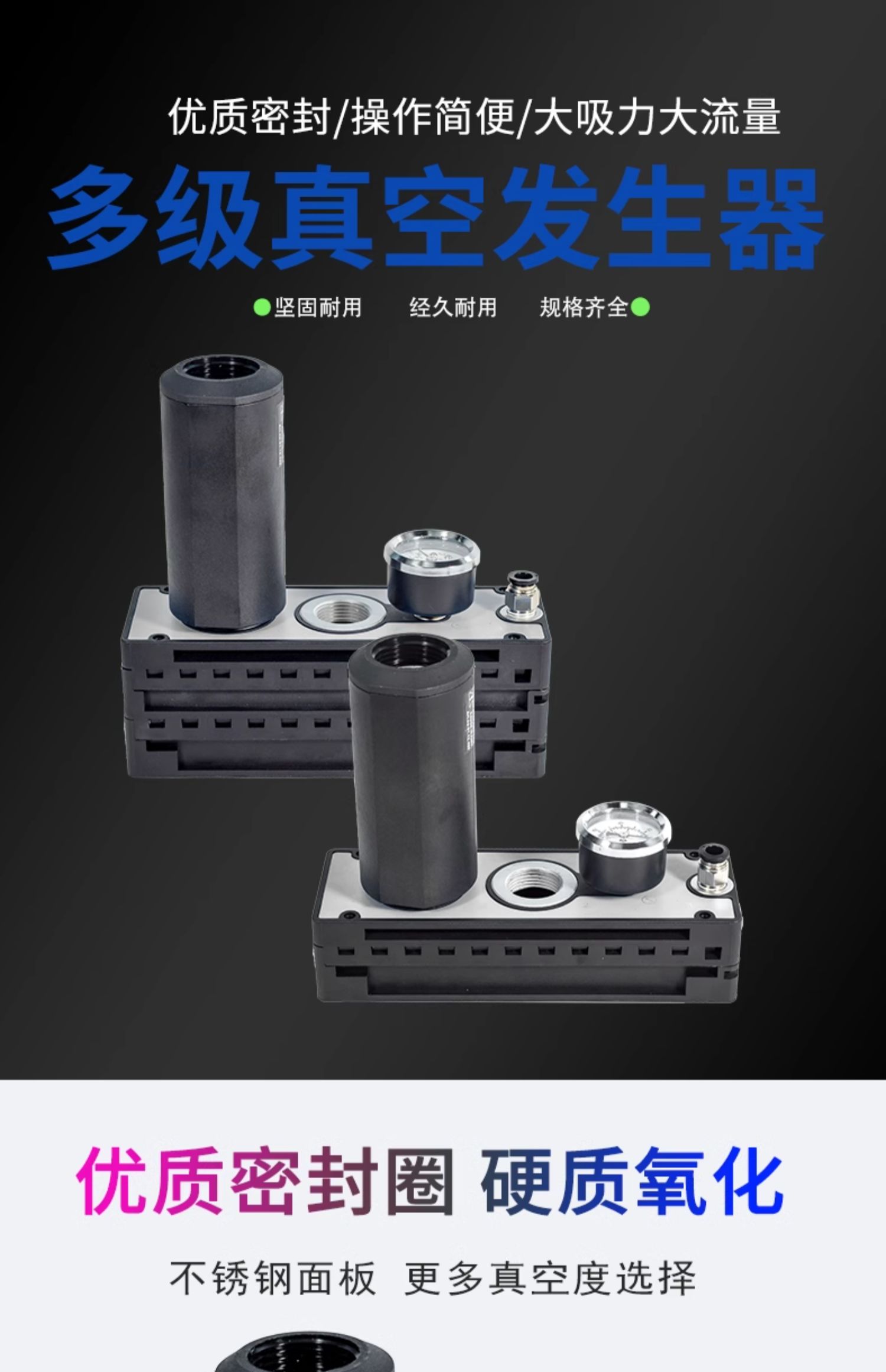 CM25/50/75/100-C CM125/150-D CM25/50/75/100-C-A CM125/150-D-A CL25/50/75/100-C CL125/150-D CH25/50/78/5-C 多級高真空型發(fā)生器 詳細(xì)信息 多級高真空型發(fā)生器的工作原理是利用噴管高速噴射壓縮空氣,?在噴管出口形成射流,?產(chǎn)生卷吸流動。?這種工作原理使得噴管出口周圍的空氣不斷地被抽吸走,?從而使吸附腔內(nèi)的壓力降至大氣壓以下,?形成一定真空度。?
