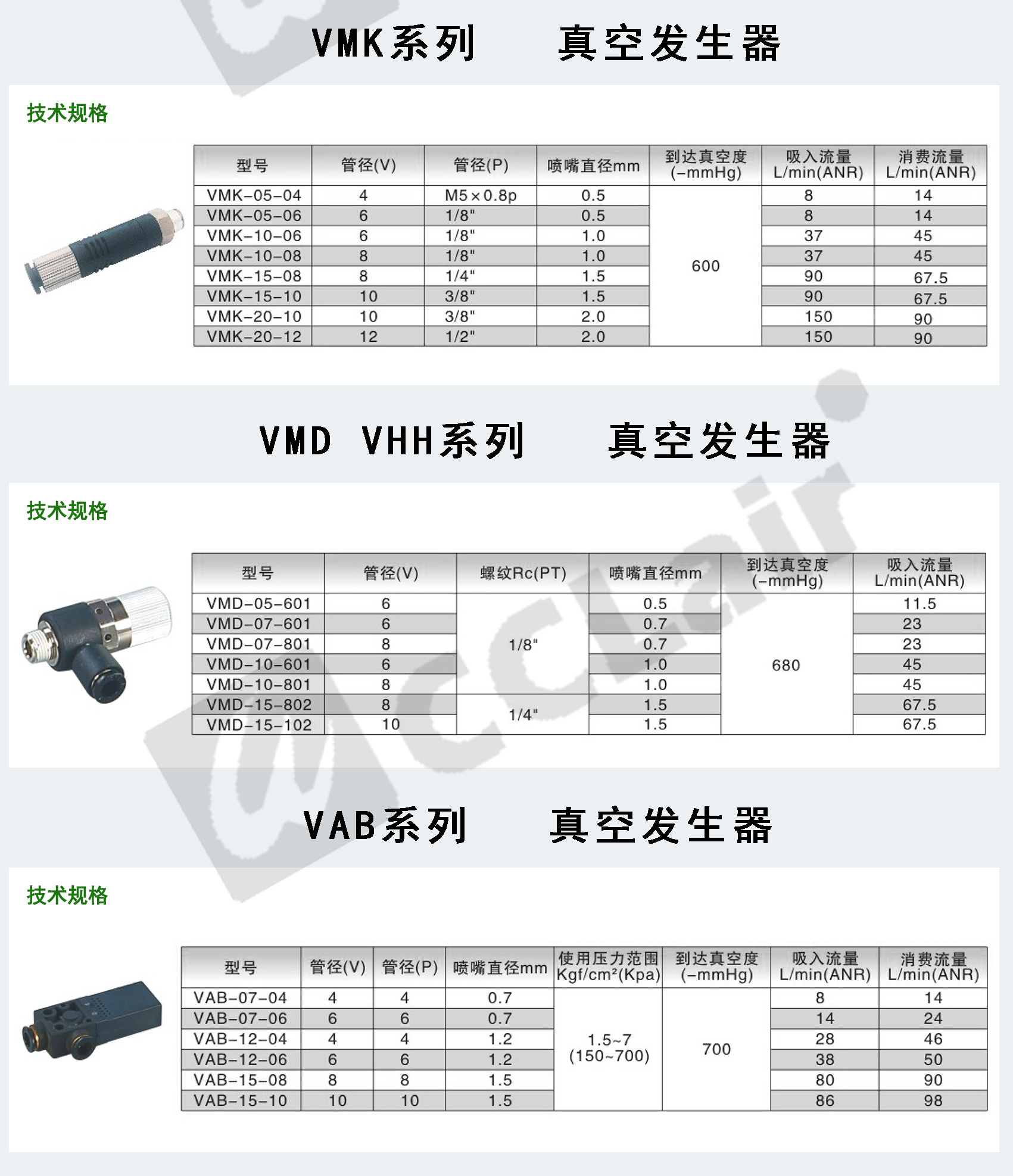 ZV-04,ZV-06,ZV-08,VAB-0706,VAB-1006,VAB-1206,VMK-05-4M5,VMK-05-601,VMK-10-601,VMK-10-801,VMK-15-802,VML-05-04,VML-05-06,VML-07-04,VML-10-06,VML-10-08,VML-15-08,VMD-05-601 VMD-07-601,VMD-07-801,VMD-10-601,VMD-10-801真空發(fā)生器 詳細(xì)信息