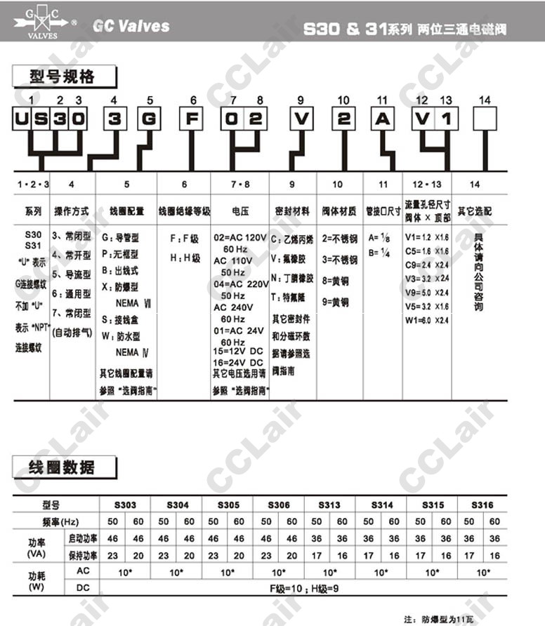 S303GF02C2AV7,S303GF02C2AV9,S303GF02C2AW1,GC Valves S303GF02C2BV1,S303GF02C2BC5,S303GF02C2BC9,