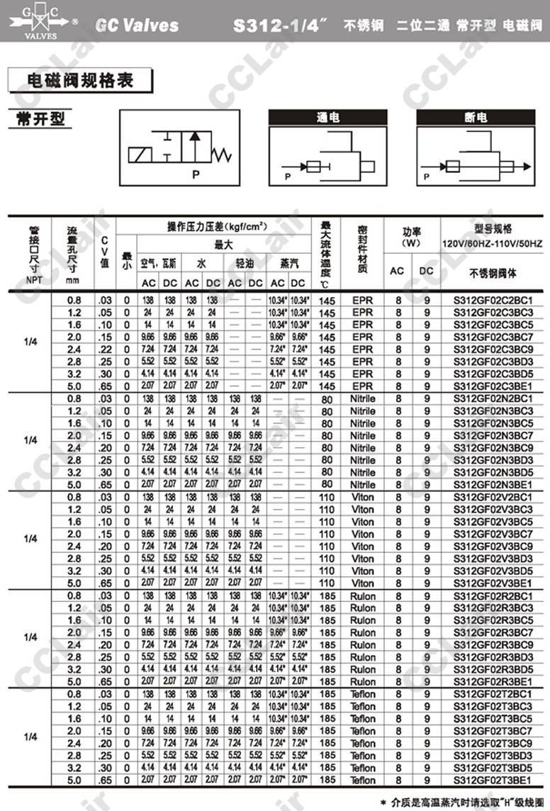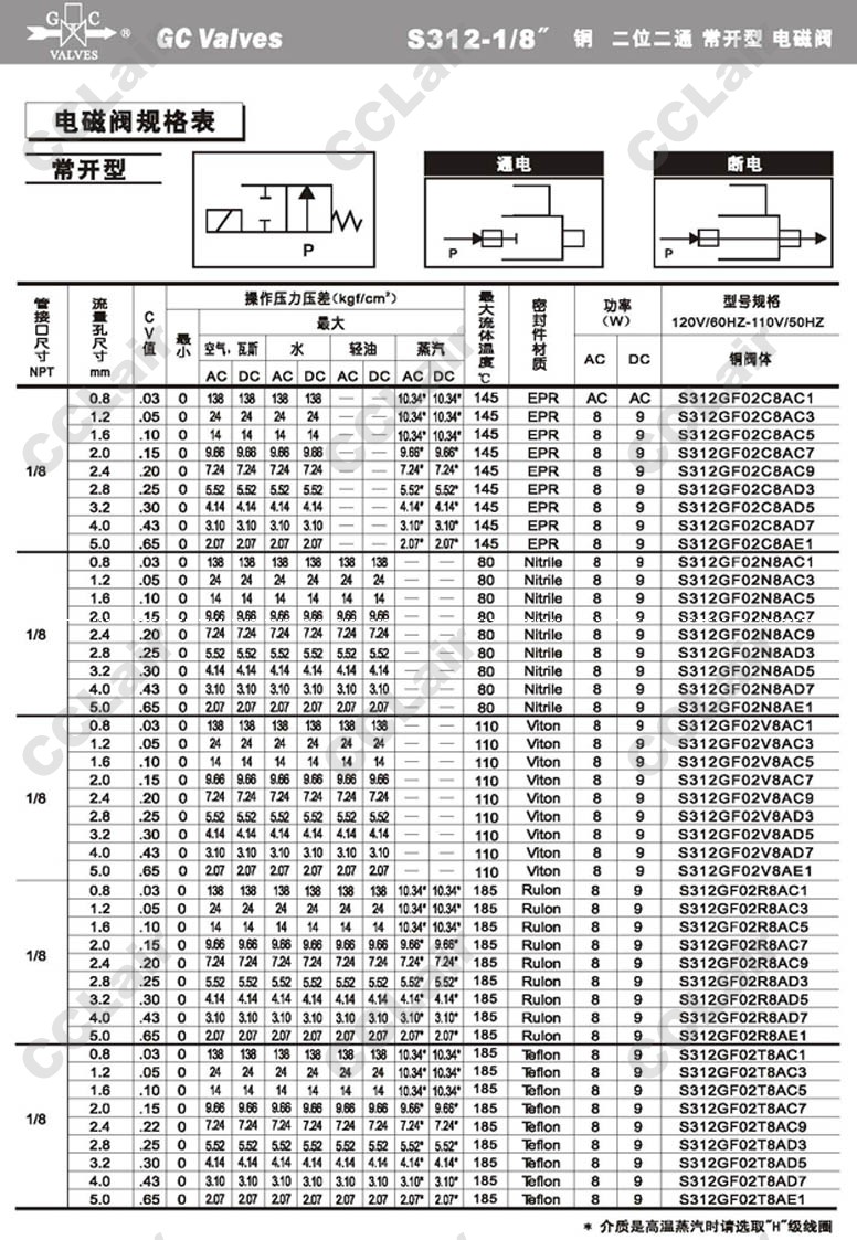 S312GF02V8AC9,S312GF02V8AD3,S312GF02V8AD5,S312GF02V8AD7,GC Valves S312GF02V8AE1,S312GF02R8AC1,