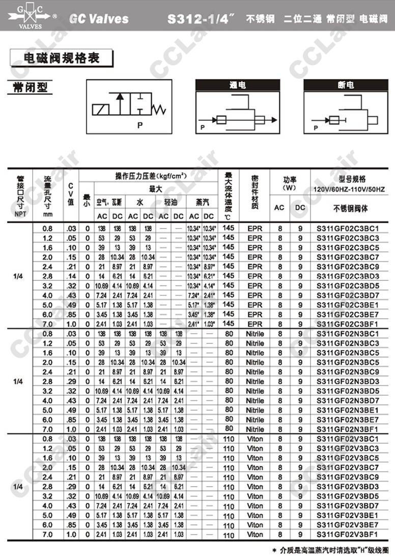 S311GF02N8AD3,GC Valves S311GF02N8AD5,S311GF02N8AD7,S311GF02N8AE1,S311GF02N8AE7,S311GF02N9AF1,
