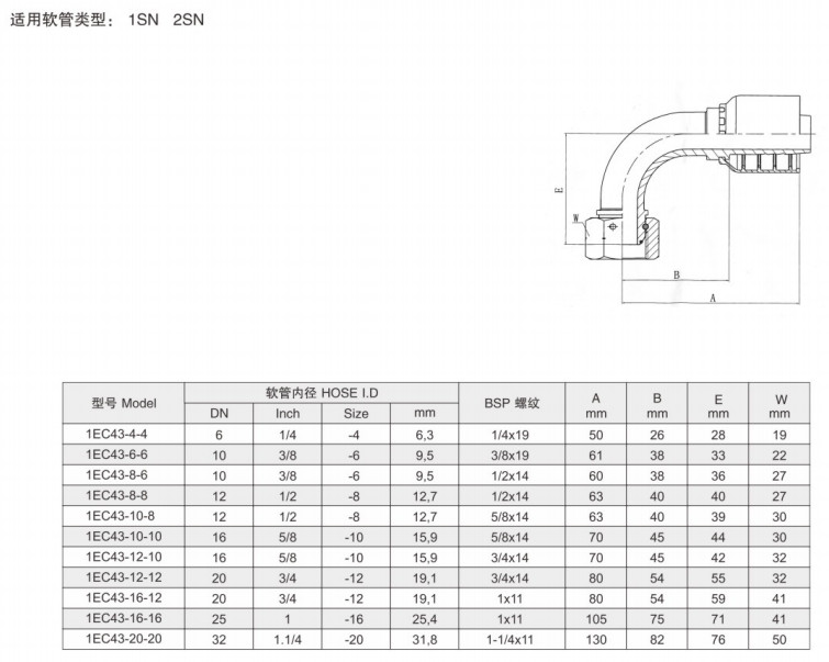 型號(hào): 1EC43-4-4,1EC43-6-6,1EC43-8-6,1EC43-8-8,1EC43-10-8,1EC43-10-10,1EC43-12-10,90度彎接頭