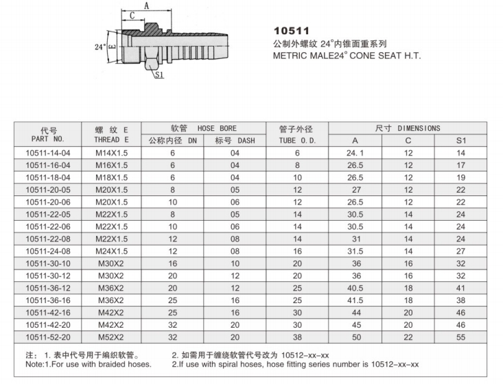 10511-22-06,10511-22-08,10511-24-08,10511-30-10,10511-0-12,10511-36-12, 10511-36-16,10511-42-16,10511-42-20,10511-52-20,