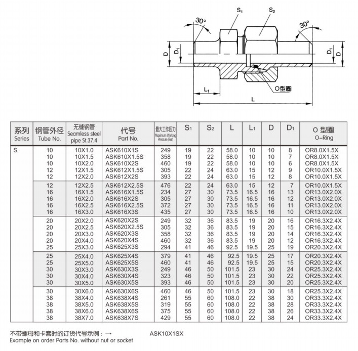 型號: ASK610*1S,ASK612*1.5S,ASK616X1.5S,ASK620X2S,ASK630*3S,直通焊接接頭