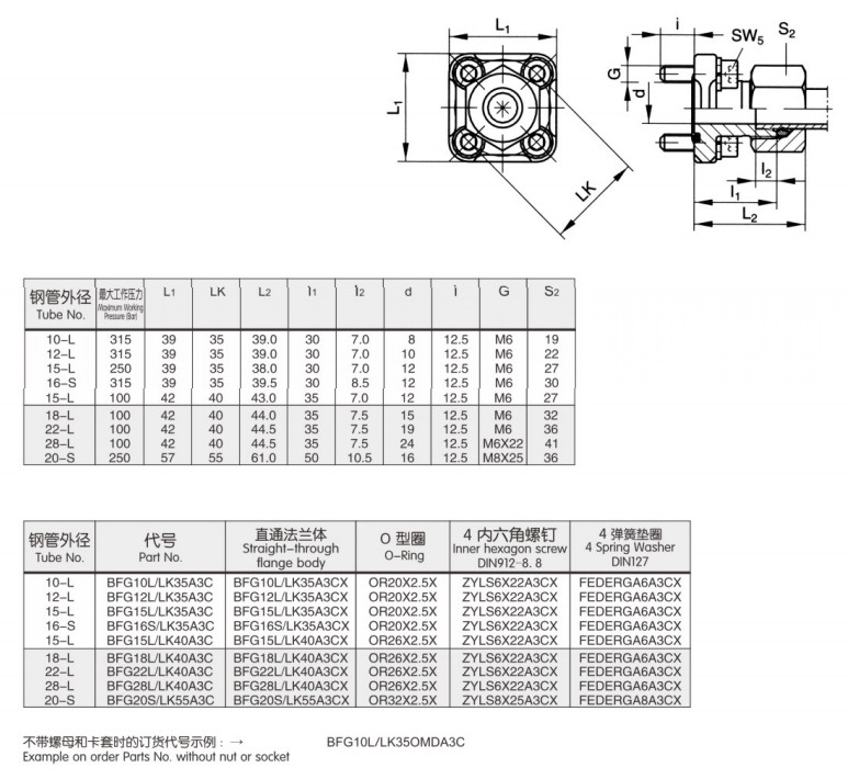 BFG10L/LK35A3C,BFG12L/LK35A3C,BFG18L/LK40A3C,BFG20S/LK55A3C,液壓方形法蘭式接頭