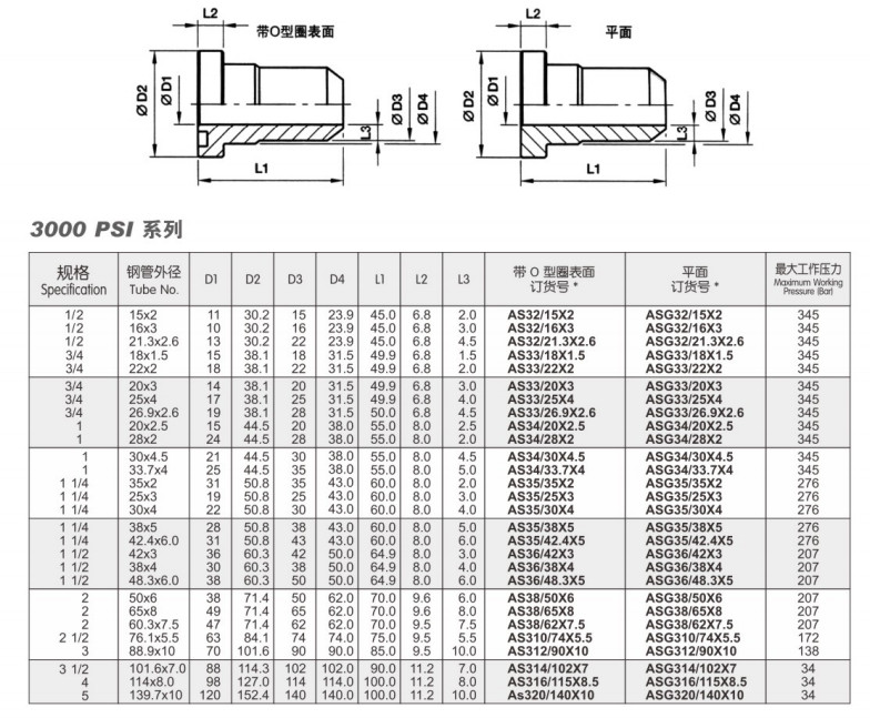 首頁 > 產(chǎn)品&解決方案 > AS32/15X2,AS33/26.9X2.6,ASG3/18X1.5,ASG33/22X2,ASG33/20X3,直通法蘭接頭