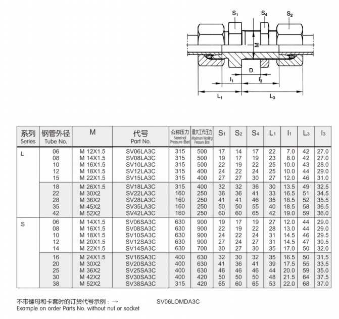 SV06LA3C,SV08LA3C,SV10LA3C,SV12SA3C,SV14SA3C,SV6SA3C,直通隔板式接頭