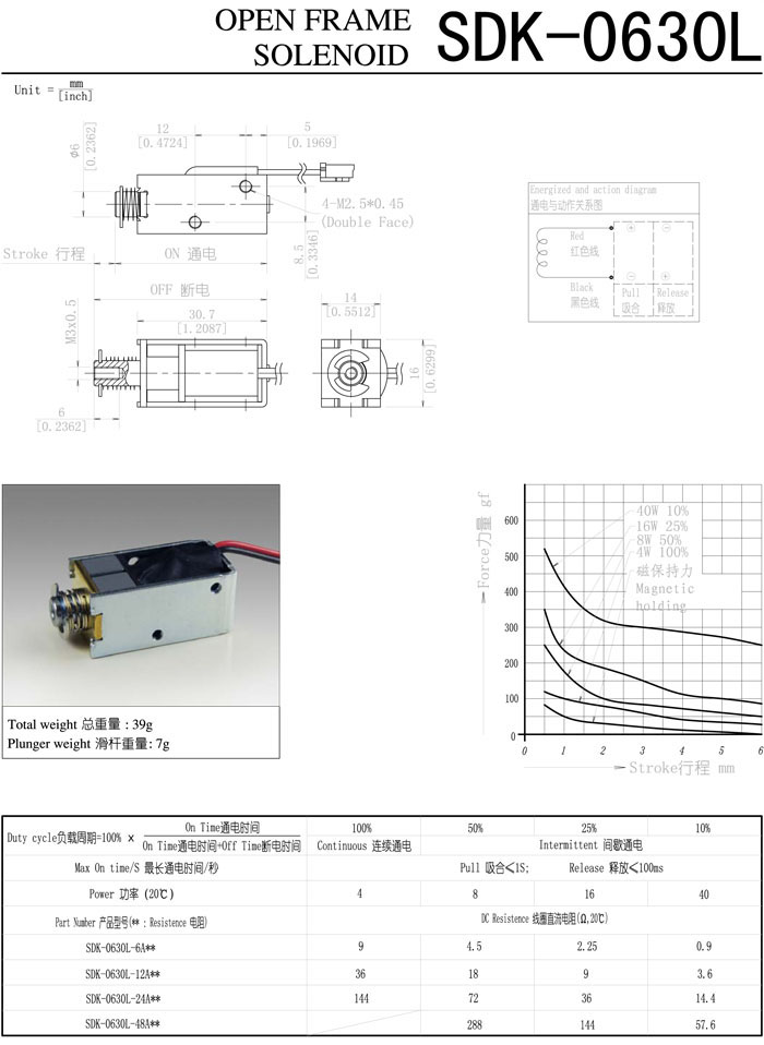 SDK-0630L-6A,SDK-0630L-12A,SDK-0630L-24A,SDK-0630L-48A,直動電磁鐵