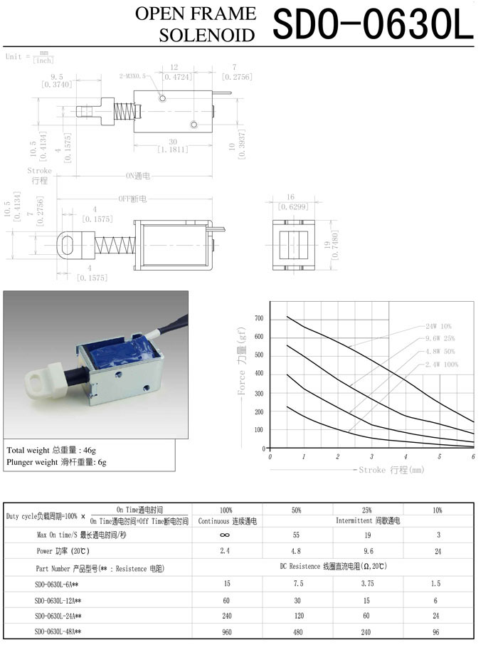 詳細信息 SDC-0630L-06A,SDC-0630L-12A,SDC-0630L-24A,SDC-0630L-48A,直動電磁鐵