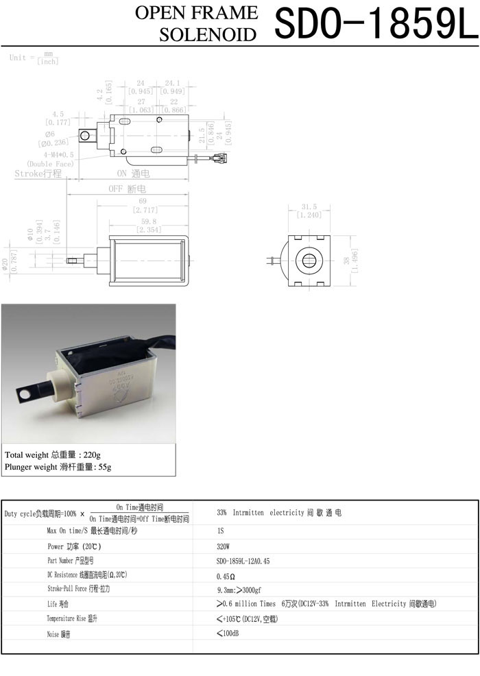 詳細(xì)信息 SDO-1859L-12A0.45,直動(dòng)電磁鐵