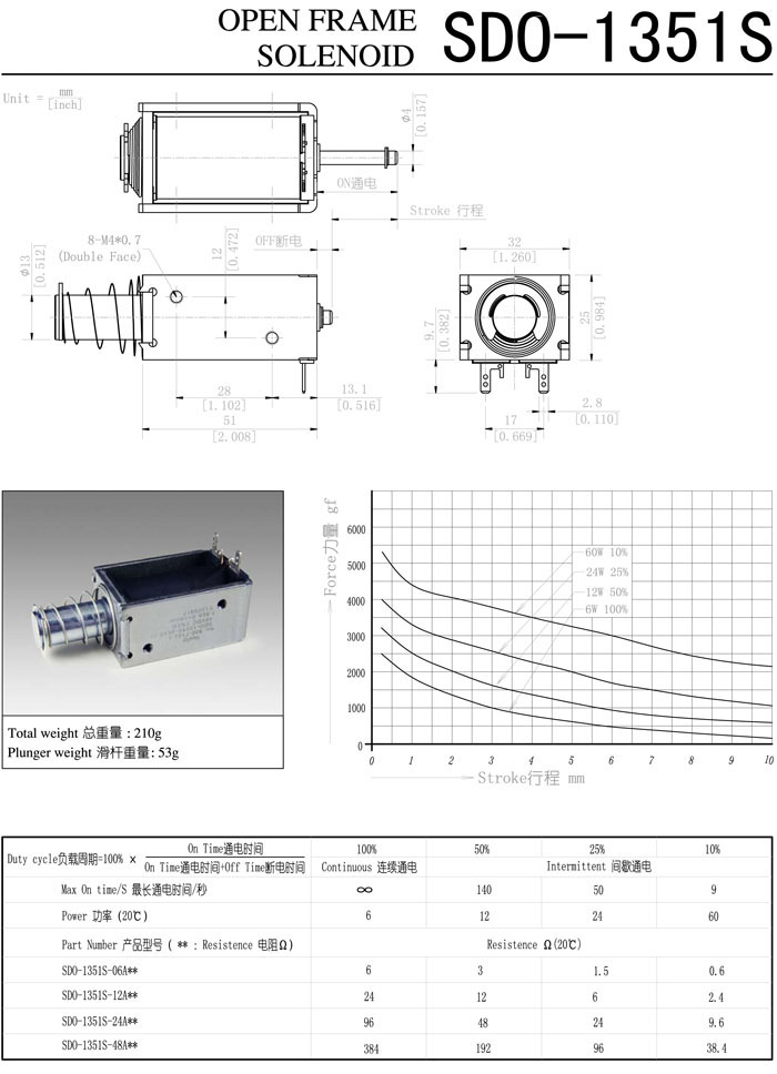 詳細(xì)信息 SDO-1351S-06A,SDO-1351S-12A,SDO-1351S-24A,SDO-1351S-48A,直動電磁鐵
