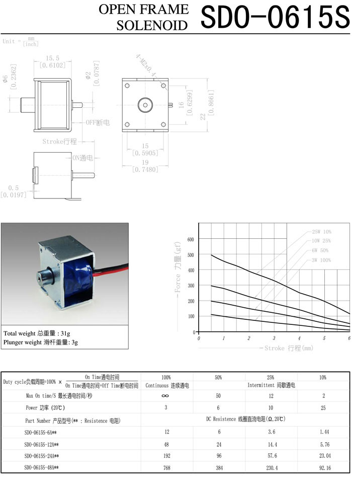 詳細(xì)信息 SDO-0615S-6A,SDO-0615S-12A,SDO-0615S-24A,SDO-0615S-48A,直動(dòng)電磁鐵
