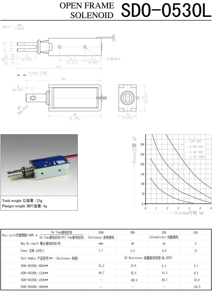 詳細(xì)信息 SDO-0530L-06A,SDO-0530L-12A,SDO-0530L-24A,SDO-0530L-48A,直動(dòng)電磁鐵