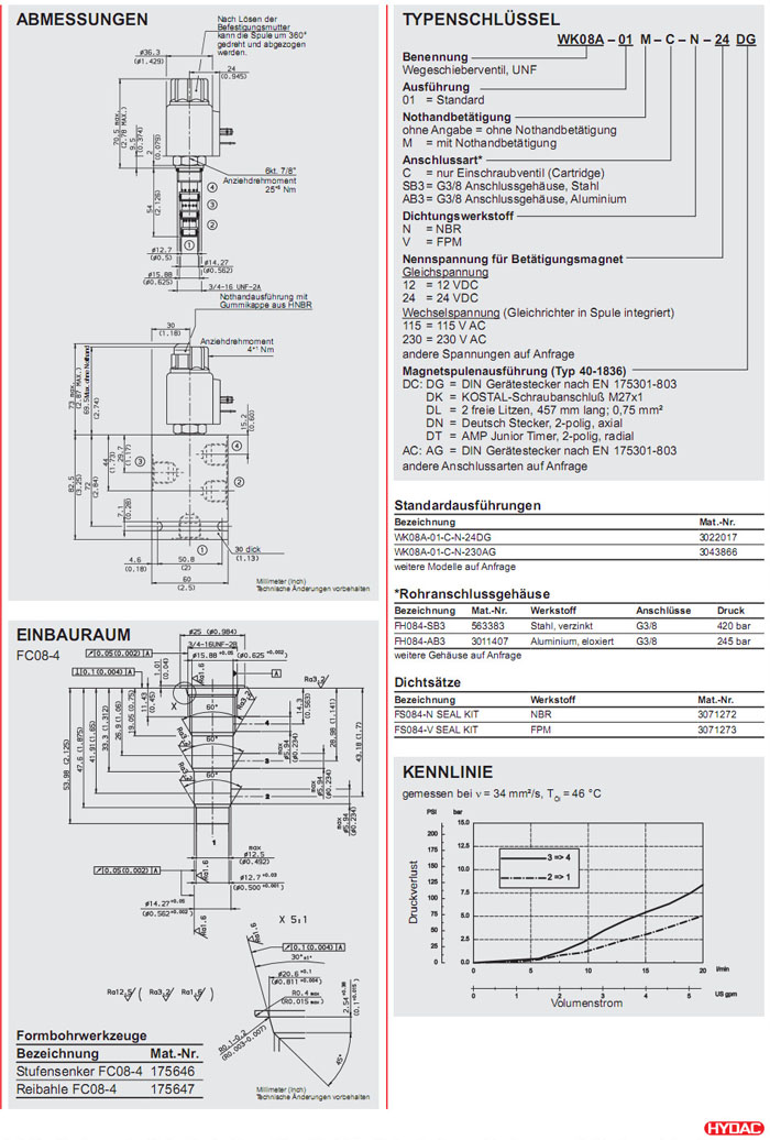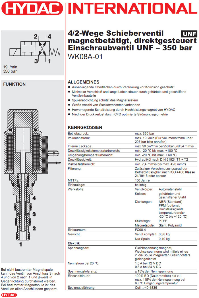 WK08A-01-C-N-24DG,WK08A-01-C-N-230AG,HYDAC電磁4/2方向滑閥