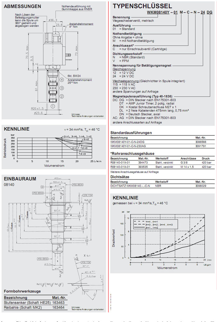 WKM08140Y-01-C-N-24DG,WKM08140Y-01-C-N-230AG,HYDAC電磁4/2方向滑閥