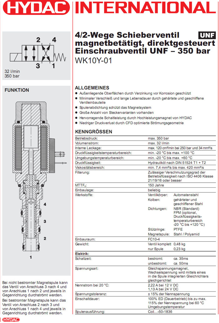 WK10Y-01-C-N-12DG,WK10Y-01-C-N-24DG,WK10Y-01-C-N-230AG,HYDAC電磁4/2方向滑閥