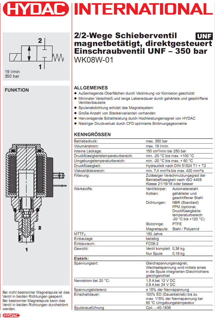 WK08W-01-C-N-24DG,WK08W-01-C-N-230AG,HYDAC電磁2/2方向滑閥
