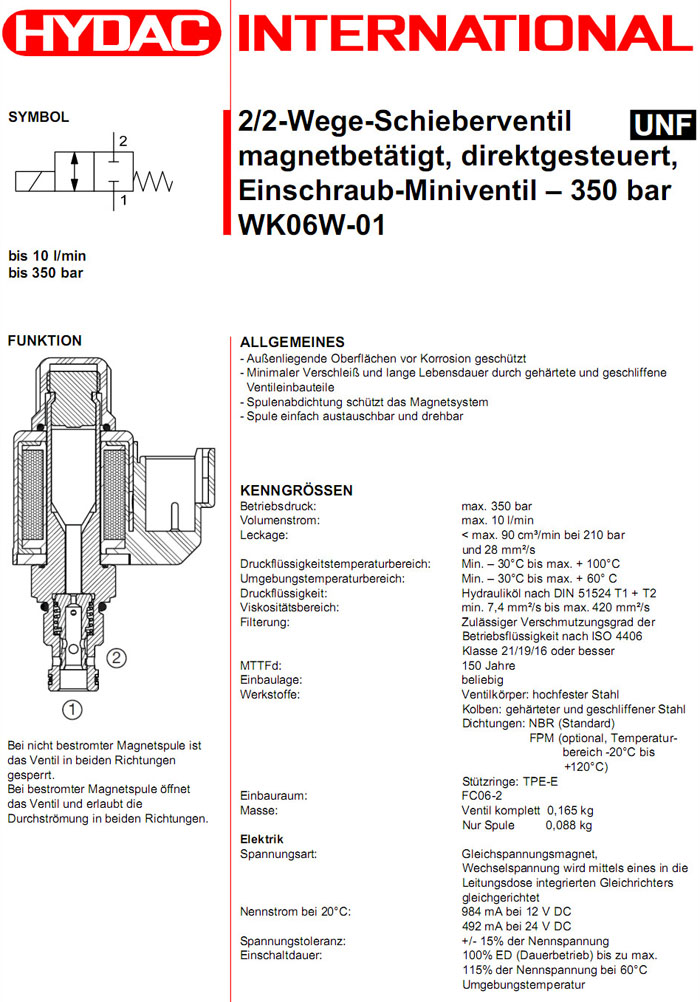 WK06W-01-C-N-0,HYDAC電磁2/2方向滑閥