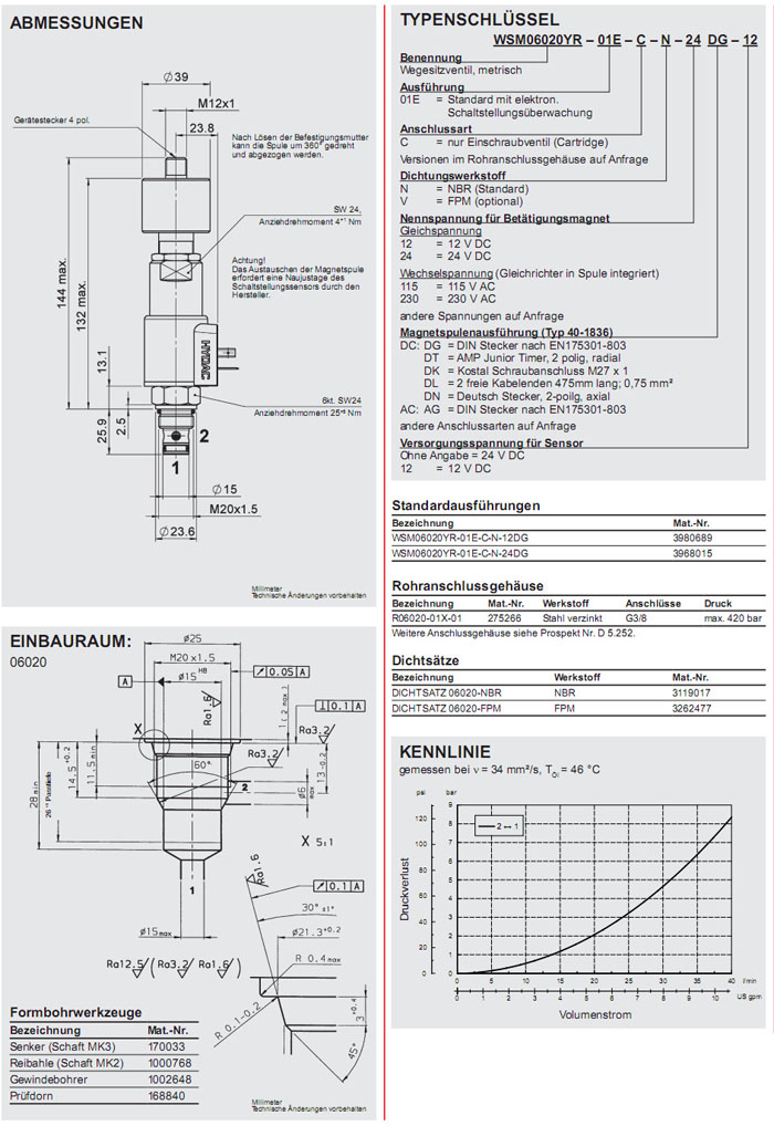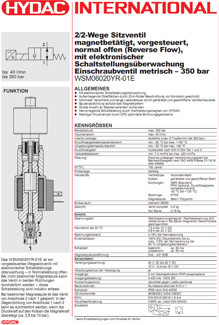 WSM06020YR-01E-C-N-12DG,WSM06020YR-01E-C-N-24DG,HYDAC電磁2/2方向座閥