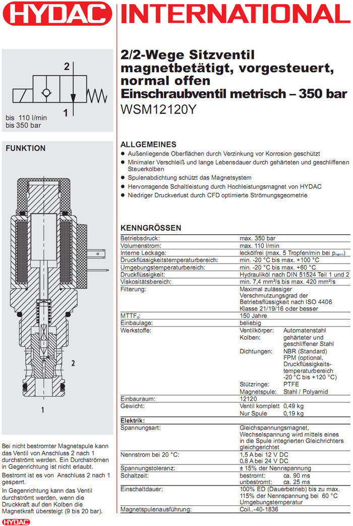 WSM121120Y-01-C-N-12DG,WSM121120Y-01-C-N-24DG,WSM121120Y-01-C-N-230AG,HYDAC電磁2/2方向座閥 |