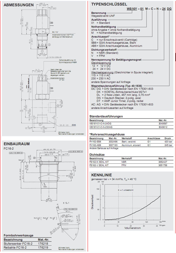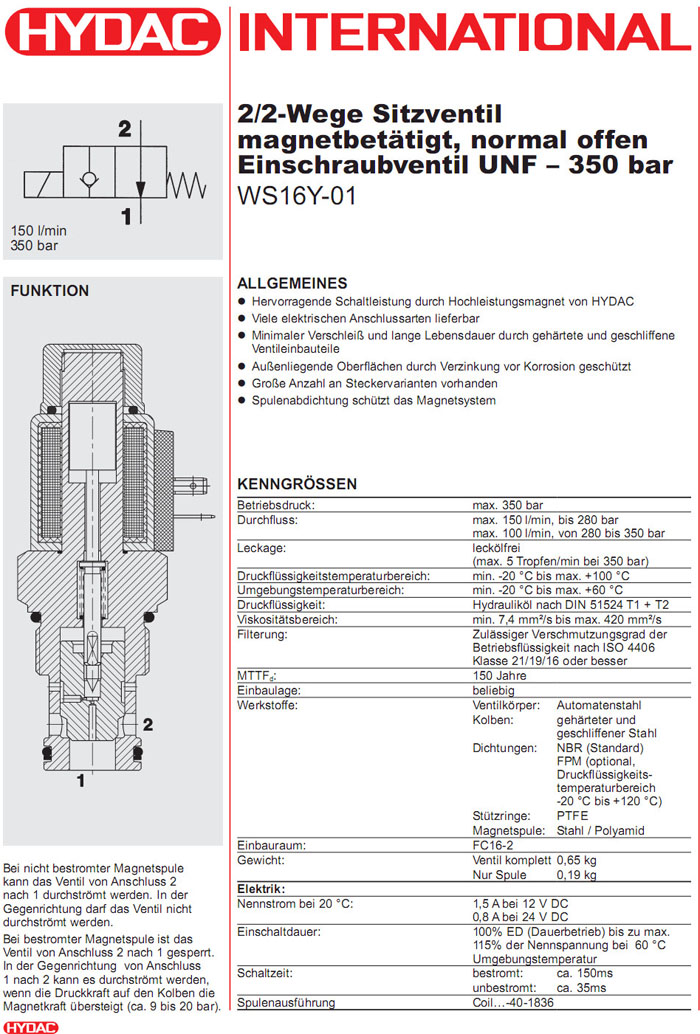 WS16Y-01-C-N-24DG,WS16Y-01-C-N-230AG,HYDAC電磁2/2方向座閥