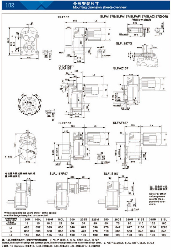 SLF37,SLF47,SLFA57B,SLFA67,SLF77,SLFA87B,SLFZ97,SLFA107,SLFAF127,SLFF157,平等軸斜齒輪減速機 |