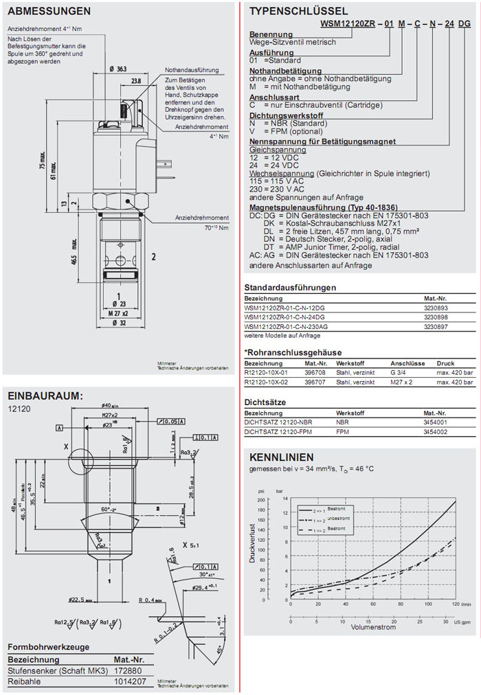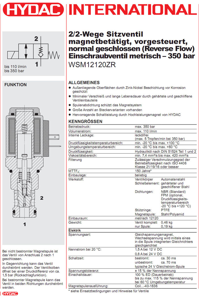 WSM12120ZR-01-C-N-12DG,WSM12120ZR-01-C-N-24DG,WSM12120ZR-01-C-N-230AG,HYDAC電磁2/2方向座閥