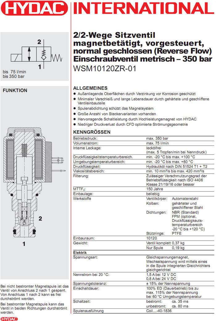 WSM10120ZR-01-C-N-24DG,WSM10120ZR-01-C-N-230AG,HYDAC電磁2/2方向座閥