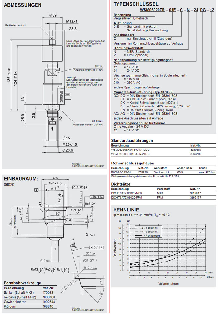 WSM06020ZR-01E-C-N-12DG,WSM06020ZR-01E-C-N-24DG,HYDAC電磁2/2方向座閥
