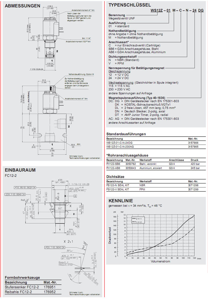 WS12Z-01-C-N-24DG,WS12Z-01-C-N-230AG,HYDAC電磁2/2方向座閥