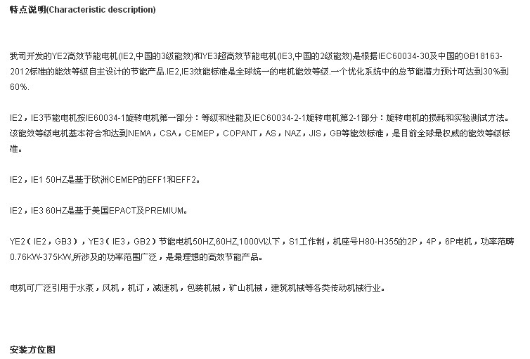 型號: YE2-80M1-2,YE2-80M2-2,YE2-90L-4,YE2-100L2-4,YE2-112M-6,YE2-132S-6,高效節(jié)能電機