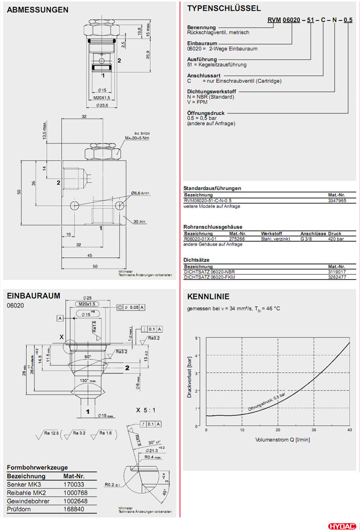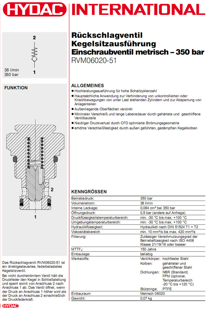 RVM06020-51-C-N-0.5,HYDAC止回閥