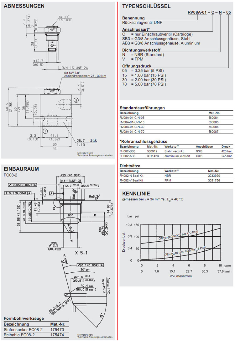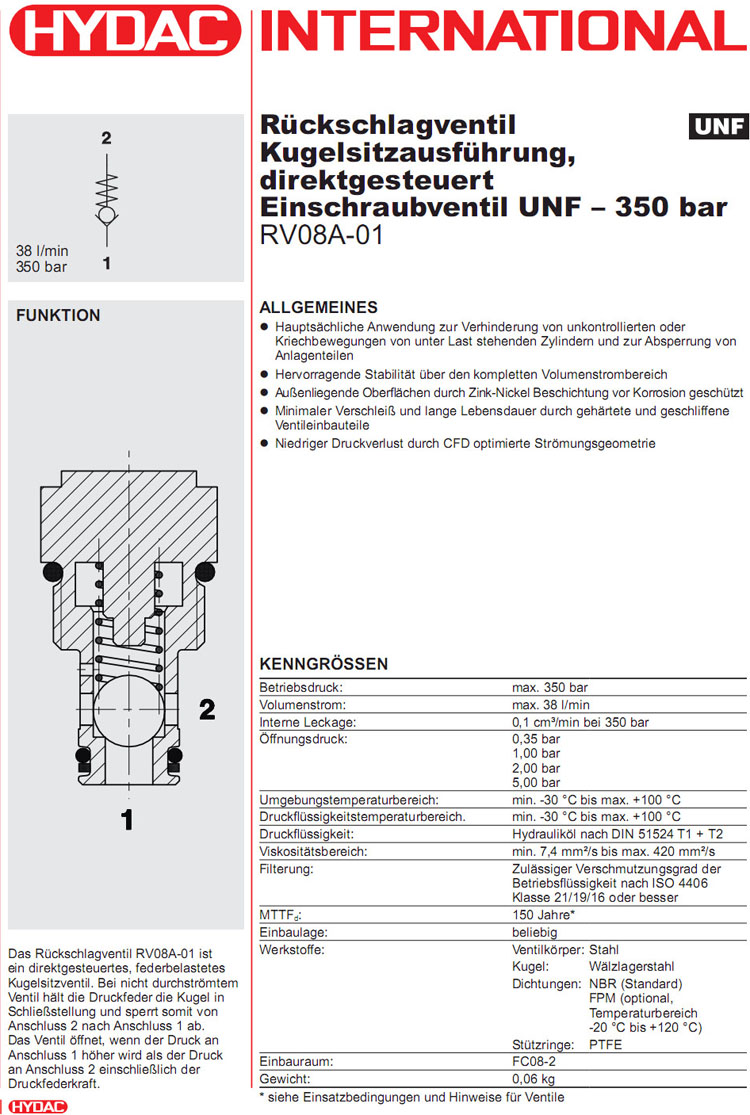 RV08A-01-C-N-05,RV08A-01-C-N-15,RV08A-01-C-N-30,RV08A-01-C-N-70,HYDAC止回閥