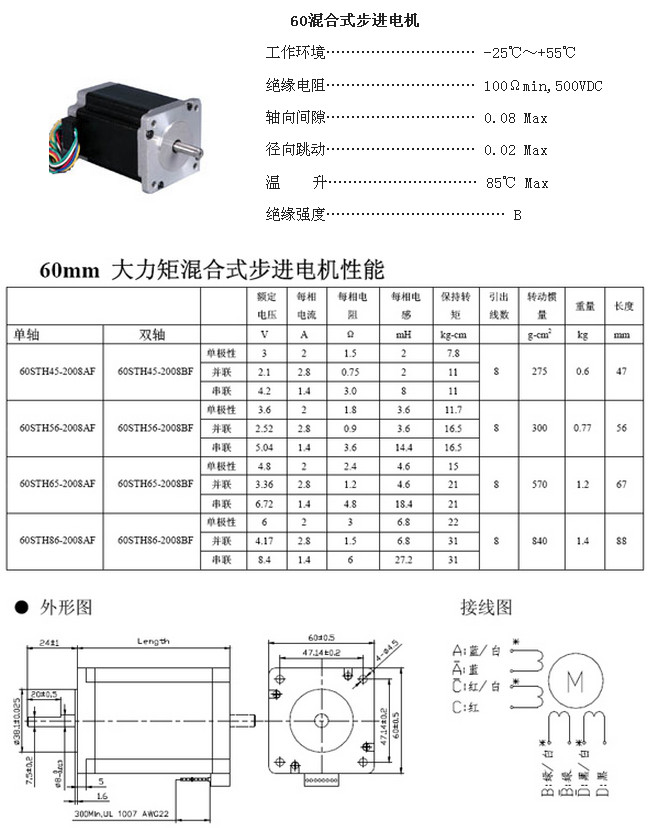 60STH45-200SAF,60STH56-200SAF,60STH65-200SBF,60STH86-200SBF,60混合式步進(jìn)電機(jī)