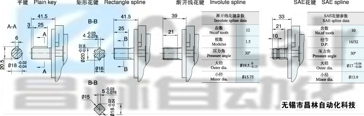 ⑥ 軸伸形式 P: 平鍵 H4: 四齒矩形花鍵 H6: 六齒矩形花鍵