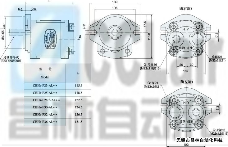 注2:進油口法蘭在側面,出油口螺紋同產品,產品型號為CBHzb-F**-AT**,