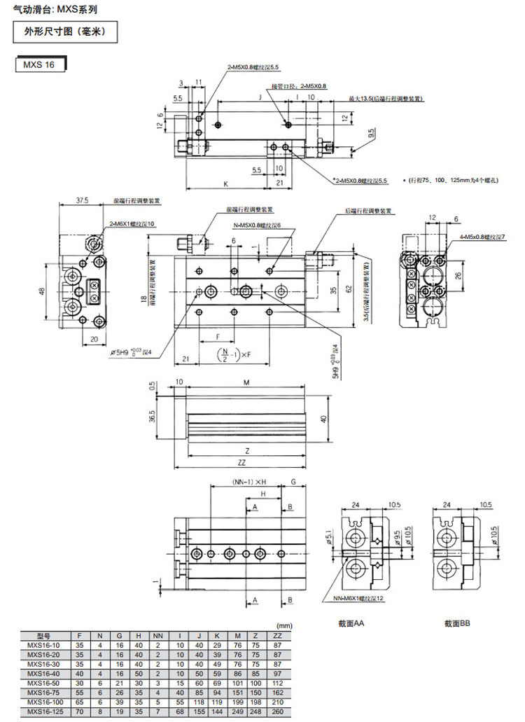 MXS25-75,MXS25-100,MXS25-125,MXS25-150,