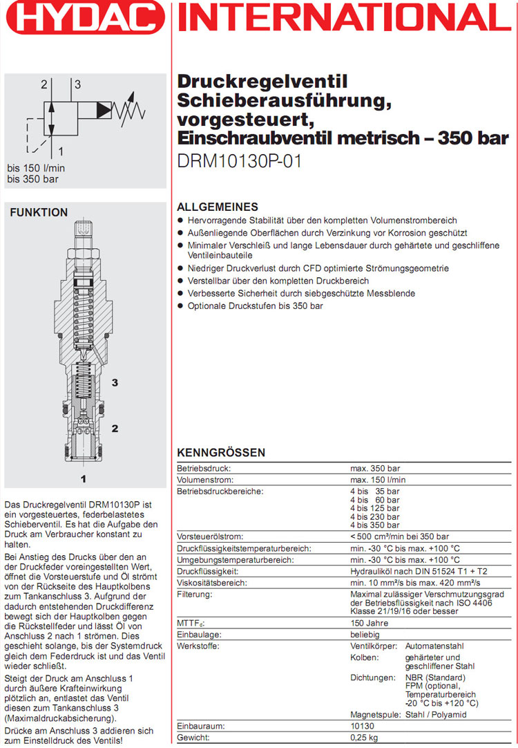 DRM10130P-01-C-N-060V,DRM10130P-01-C-N-230V,DRM10130P-01-C-N-350V,HYDAC先導(dǎo)式減壓閥