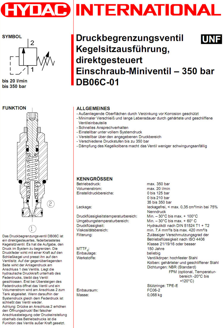 DB06C-01-C-N-180V,DB06A-01-C-N-300V,DB06A-01-C-N-500V,HYDAC直動減壓閥 |