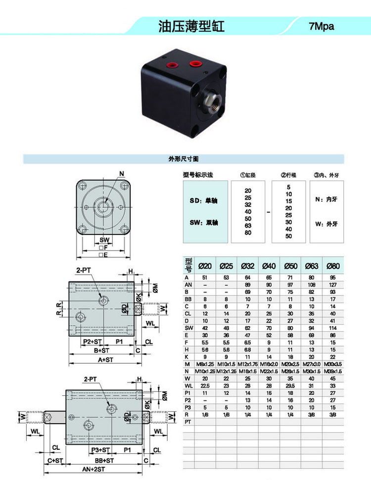 SD20,SD25,SD32,SD40,SD50,SD63,SD80,SW20,SW25,SW32,SW40,SW50,SW63,SW80,薄型油壓缸
