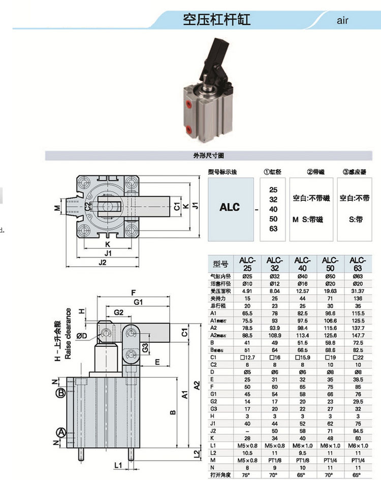 ALC-25,ALC-32,ALC-40,ALC-50,ALC-63,空壓杠桿缸