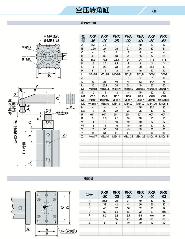 SKS16,SKS20,SKS25,SKS32,SKS40,SKS50,SKS63,SKS16-10L90,SKS63-50L90,感應(yīng)式轉(zhuǎn)角缸 |