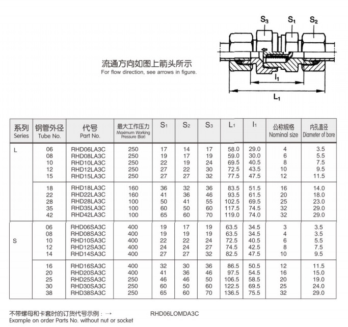 RHD06LA3C,RHD08LA3C,RHD10LA3C,RHD12SA3C,RHD14SA3C,RHD16SA3C,直通單向閥