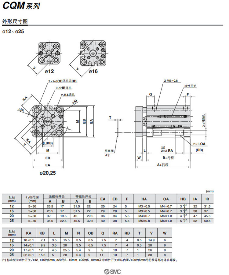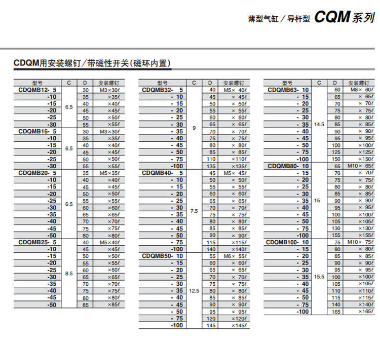 CDQMB12,CDQMB16,CDQMB20,CDQMB25,CDQMB32,CDQMB40,CDQMB50,CDQMB63,CDQMB80,CDQMB100,CDQMB12-5,SMC薄型氣缸