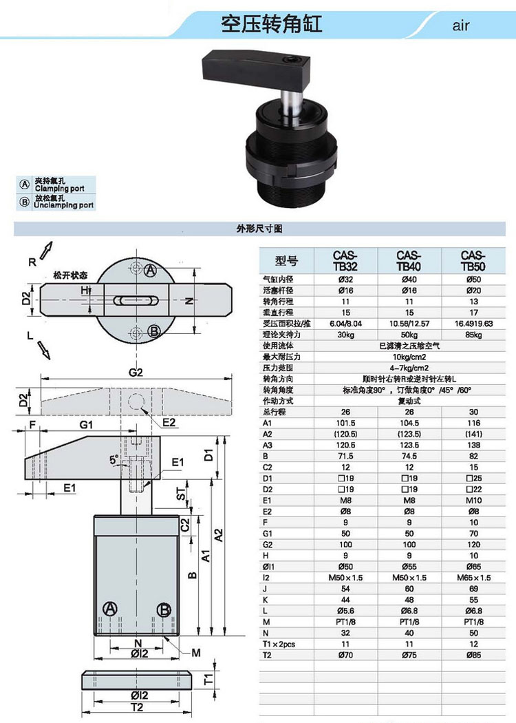 CAS,CAS-MF,CAS-M,CAS-FA,CAS-TB,CAS-25,CAS-M40,CAS-TB63,CAS-FA32,空壓轉(zhuǎn)角缸