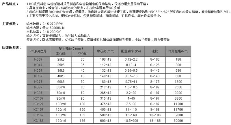 KC37,KC47,KC57,KC67,KC77,KC87,KC97,KC107,KCW37,KCM37,KCL37,KCLX37,KCN37,斜齒-傘齒減速機(jī) |