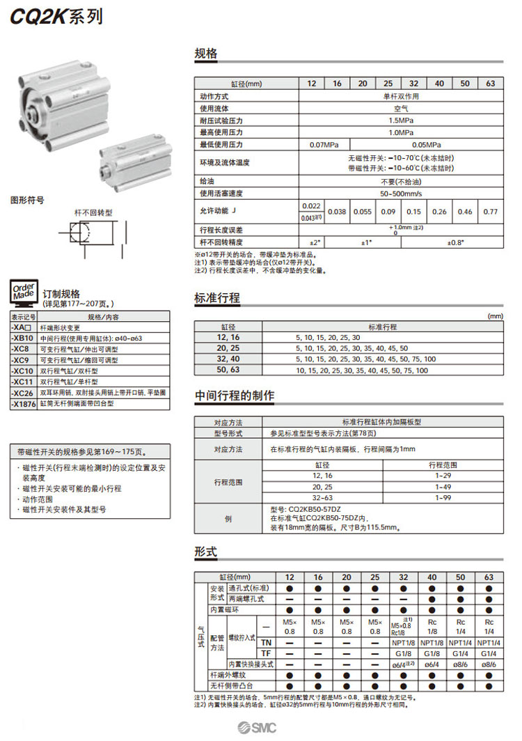 CQ2KA63-75,CQ2KA63-100,CQ2KF12-5,CQ2KF12-10,CQ2KF12-15,CQ2KF12-20,CQ2KF12-25,CQ2KF12-30,CQ2KF16-5,CQ2KF16-10,