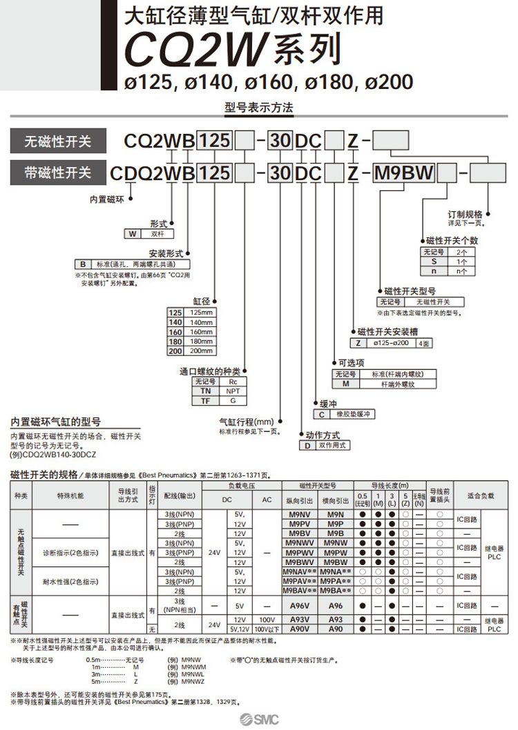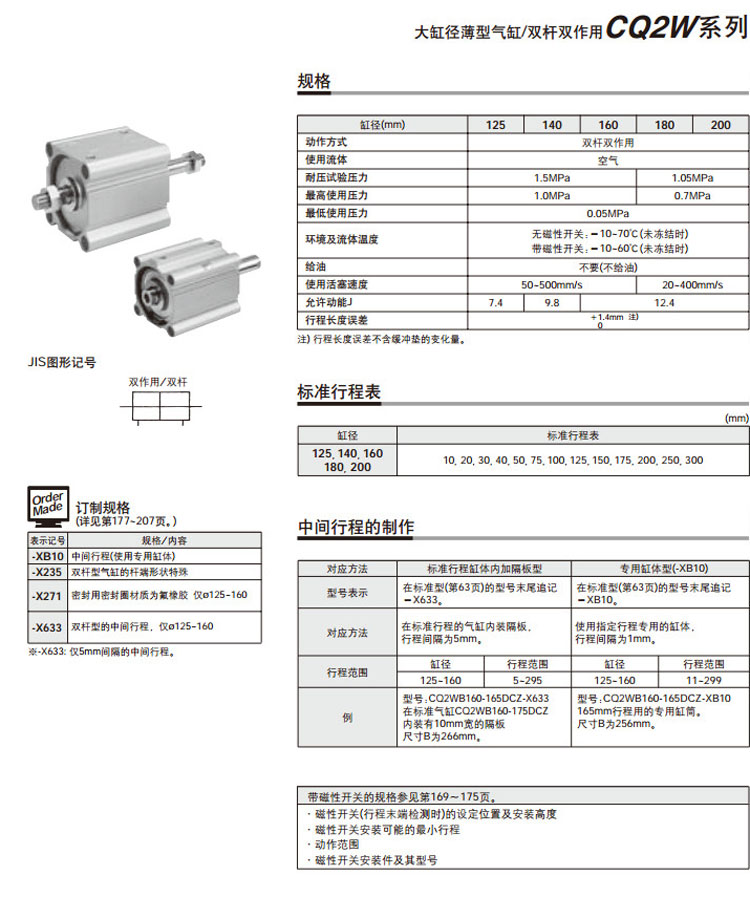 CQ2WB125,CQ2WB140,CQ2WB160,CQ2WB180,CQ2WB200,CDQ2WB125,CDQ2WB140,CDQ2WB160,CDQ2WB180,CDQ2WB200,SMC薄型氣缸