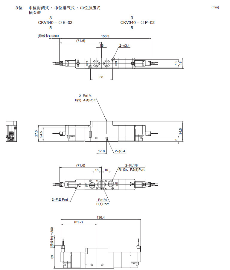 CKV310-1E,CKV320-2E,CKV330-4E,CKV340-4P,CKV350-1E,5通先導(dǎo)式電磁閥